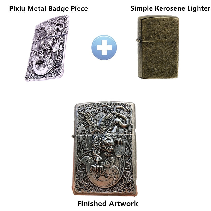 Model Number: ZR066Technics: LacquerMaterial: MetalBrand Name: FOCUSName: Pixiu Metal Badge for LighterFeatures: Metal piece with Double sides adhesive tape, Easy to usePattern Type: Chinese mythical creatures PIXIU